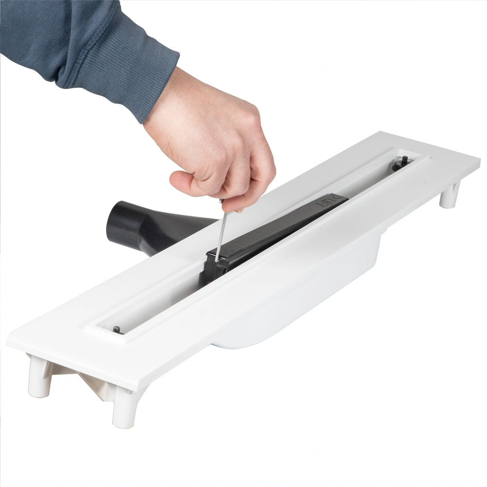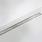 Douchegoot voor gelijkvloerse douches met epoxyhars-, dekvloer- en microcementvloeren. Hoewel de douchegoot slechts 26 mm breed is, heeft deze een hoge afvoercapaciteit van 31 liter/minuut. Het moderne, slanke design past goed bij de minimalistische vloersoorten. Als het inzetrooster qua kleur moet passen bij de dekvloer of de coating, is de uitvoering "White Epoxy" aan te raden als basis. Het RVS rooster is gezandstraald en afgewerkt met een stevige, zeewaardige epoxy coating.
