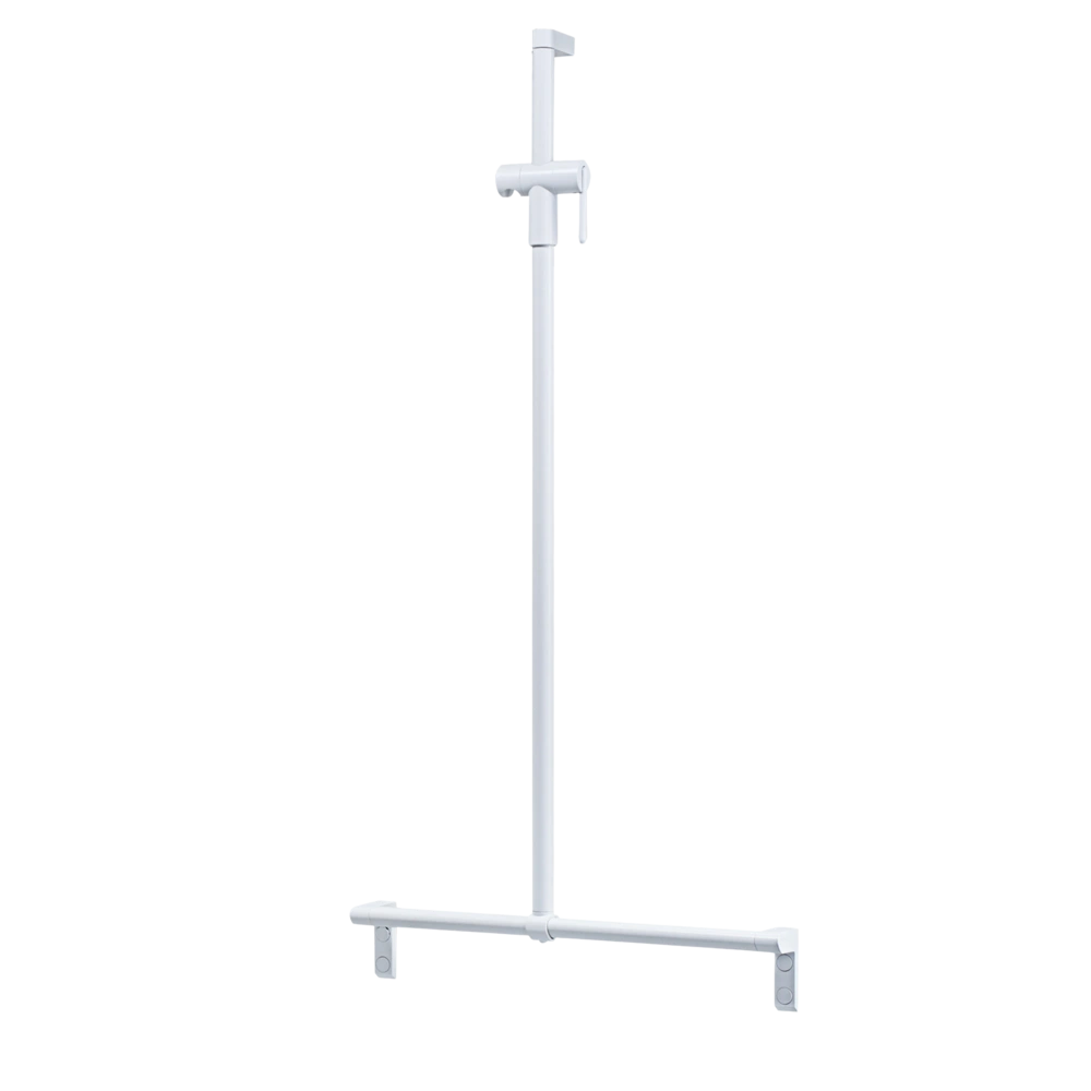 Doucheleuning met verschuifbare douchestang. De leuning heeft een trigonometrische handgreepcontour voor ergonomische grip en ondersteuning. De douchehouder op de stang is met de bedieningshendel aan...