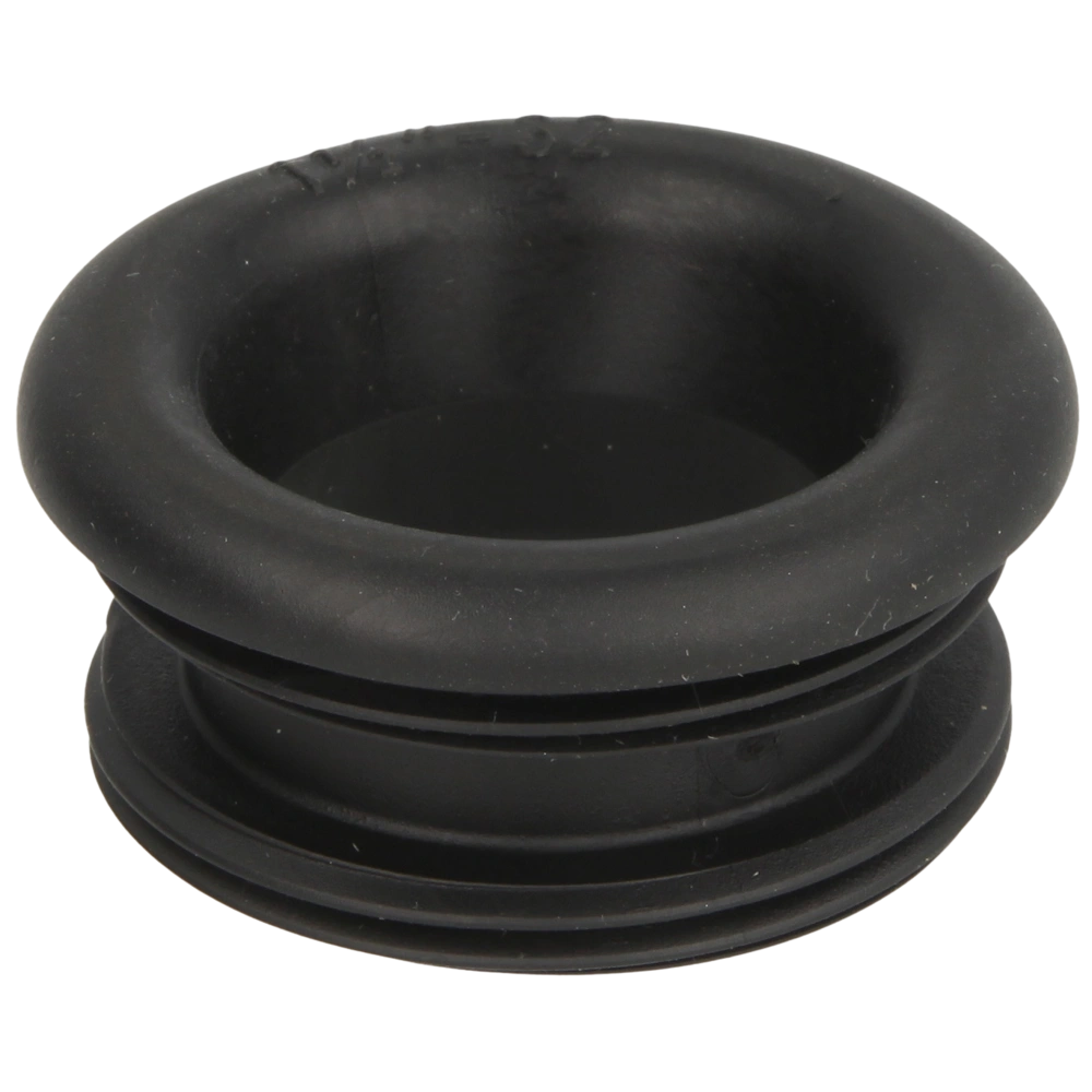 Draadnippel van rubber voor het aansluiten van sifons van messing of kunststof op ijzeren buizen met metrische schroefdraad.