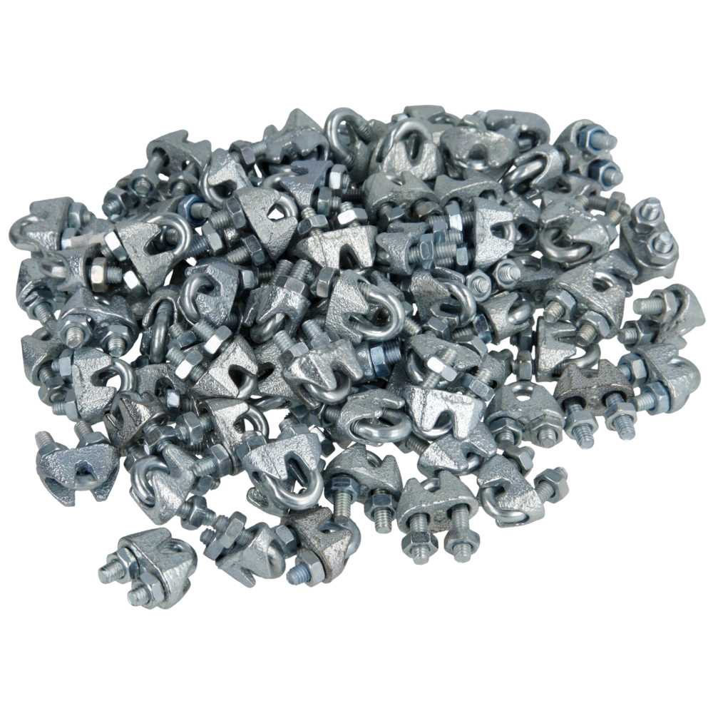 Staaldraadklemmen van verzinkt staal voor het verbinden van meerdere draad- of staalkabels van verzinkt staal.