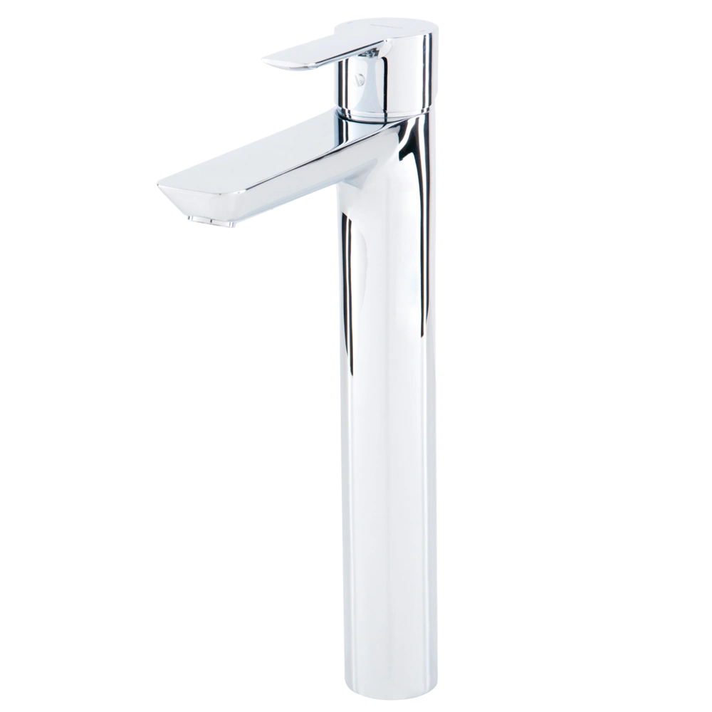 Eéngreepsmengkraan met hoge uitloop voor montage op waskommen. De mengkraan heeft een bedieningspatroon met keramische afdichtschijven, een instelbare warmwaterstop en een hoge uitloop met CACHÉ® beluchter...
