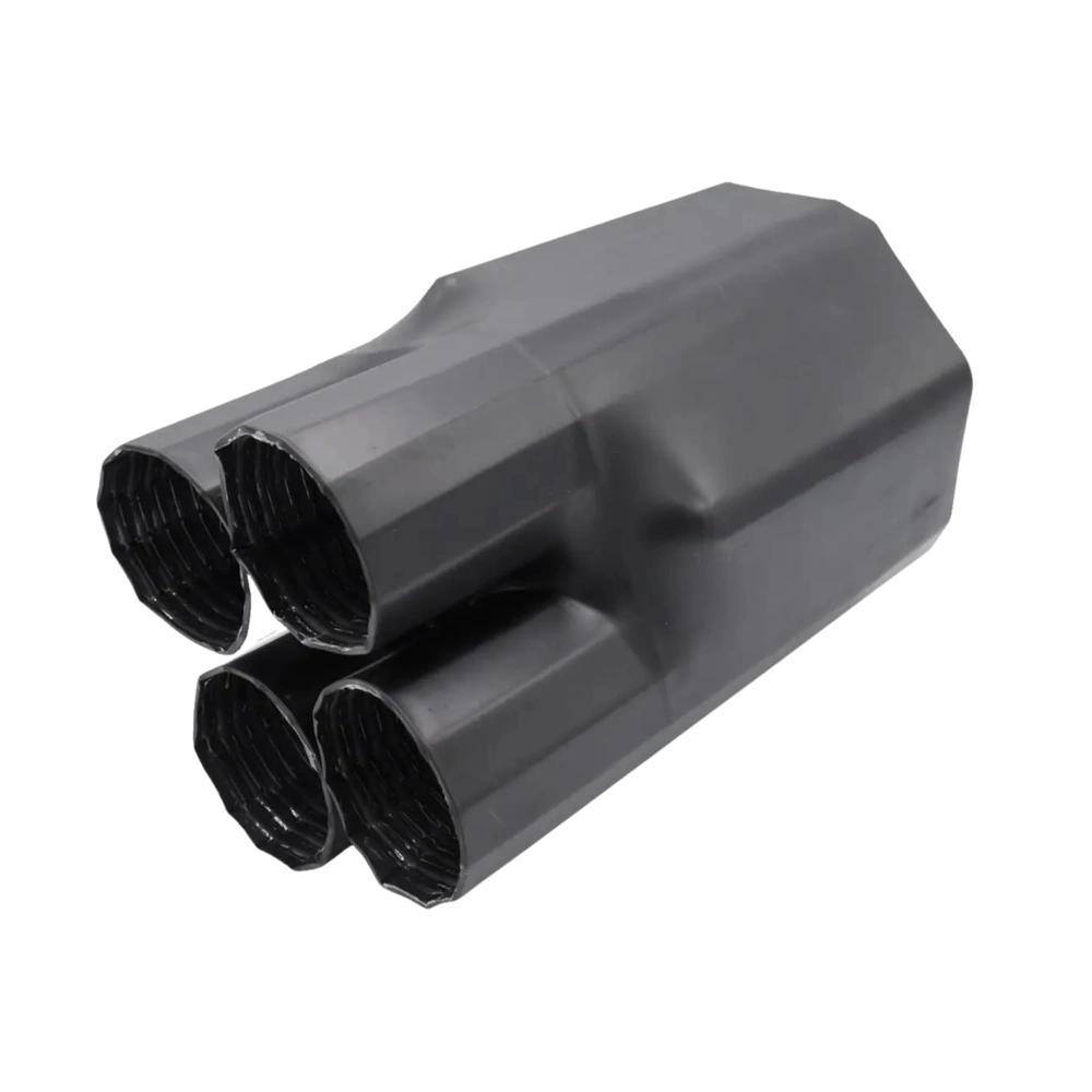 Krimpbare eindkap voor het afdichten van vier voorgeïsoleerde leidingen. Biedt een betrouwbare afdichting en bescherming tegen invloeden van buitenaf.