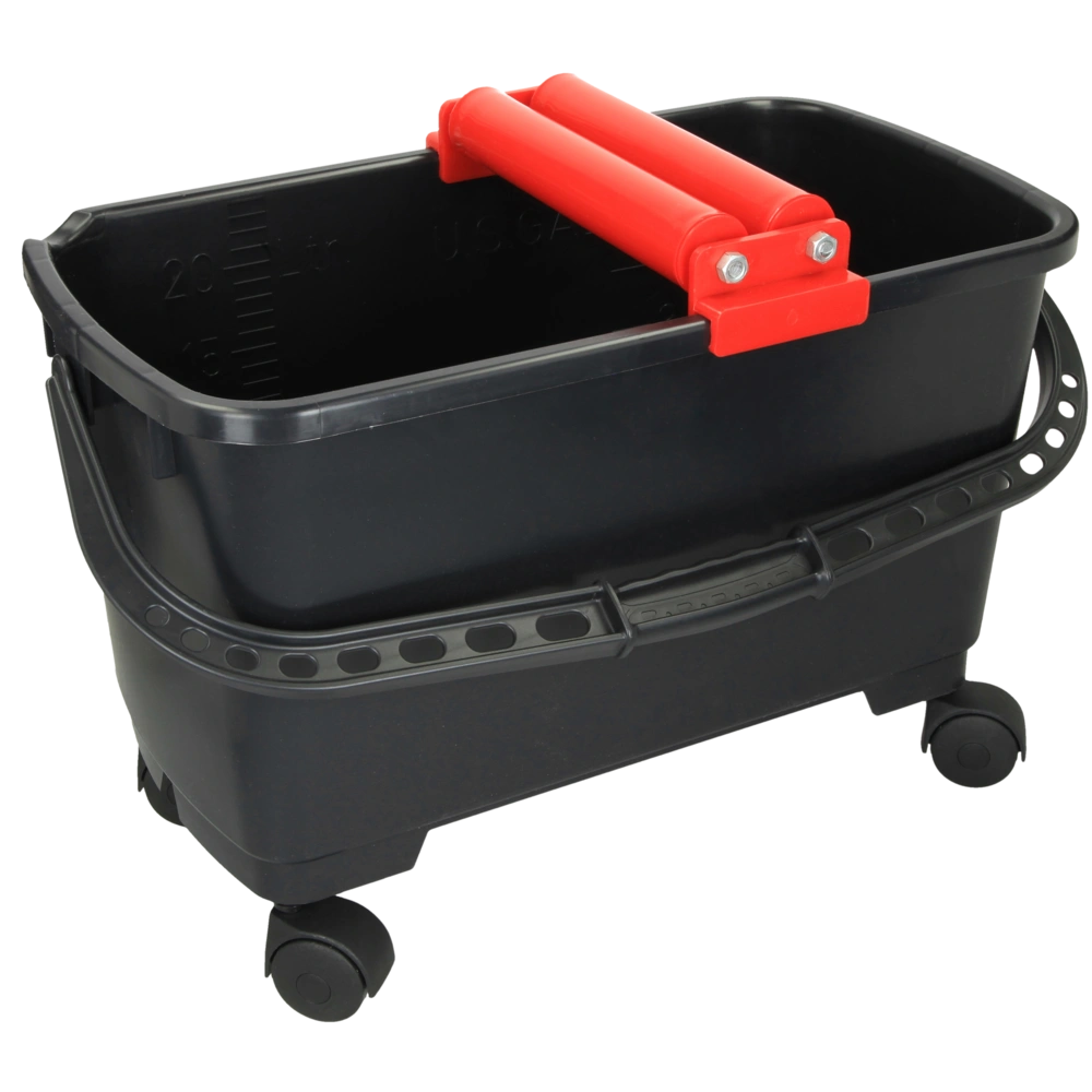 Stabiele emmer met draaggreep, rollen opzetstuk met 2 rollen en 4 wielen