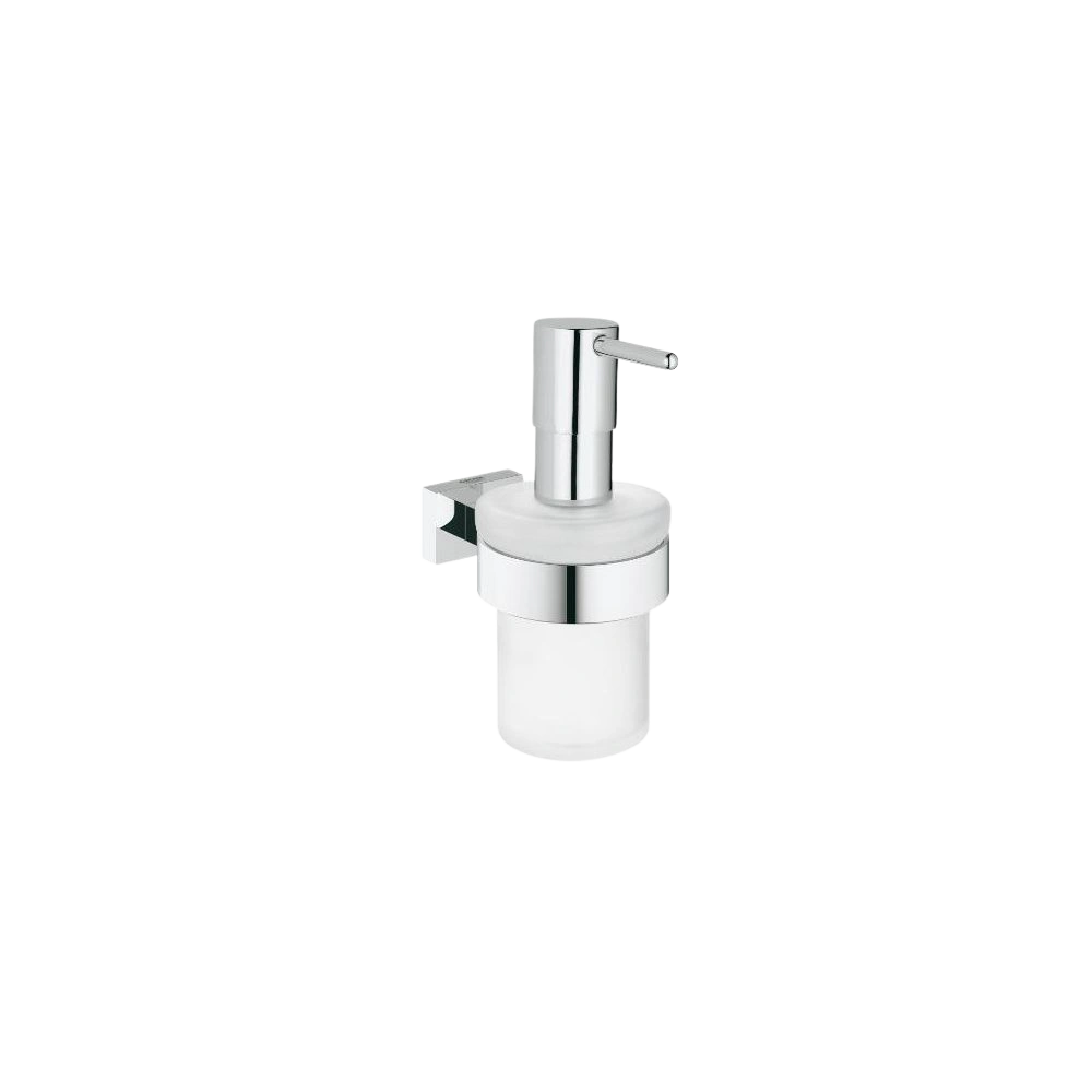 The Essentials Cube zeepdispenser bestaat uit een houder en een zeepdispenser en heeft een blinde aansluiting.
