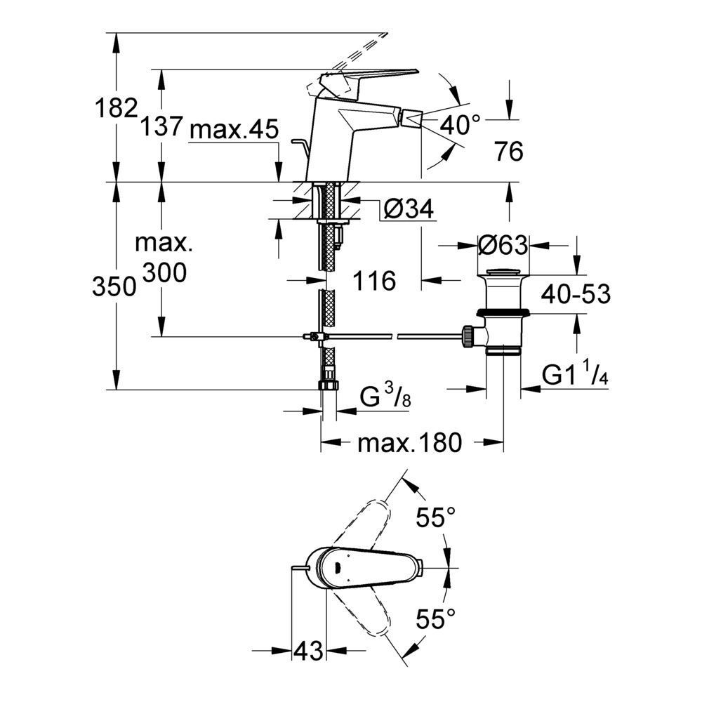 Eengreeps bidetmengkraan voor eengatsmontage. De armatuur heeft een 35 mm keramisch patroon met een geïntegreerde temperatuurbegrenzer. De mousseur-uitloop kan 40° worden gedraaid door middel van het kogelgewricht. Het onderhoudsvriendelijke oppervlak is ongevoelig voor krassen.