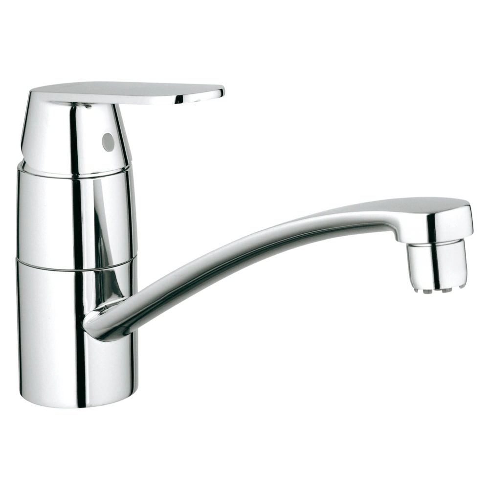 Eengreeps keukenmengkraan voor eengatsmontage. De lagedrukarmatuur heeft een GROHE SilkMove® 46 mm keramisch patroon, een variabel instelbare volumebegrenzer en een platte uitloop met perlator die 140° draaibaar is. Het GROHE StarLight® chromen oppervlak is onderhoudsvriendelijk, hygiënisch en krasbestendig. Met het snelmontagesysteem en de flexibele aansluitslangen is de mengkraan snel en eenvoudig te monteren.
