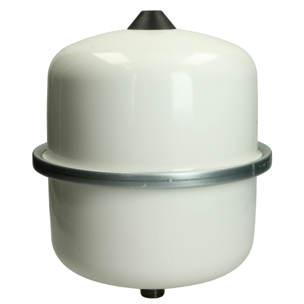 Hoogwaardig membraanexpansievat voor gesloten verwarmings- en koelsystemen. Het flexibele membraan absorbeert eventuele uitzetting van het water. Hierdoor blijft de druk in het systeem constant. Het vat is gevuld met stikstof ter bescherming tegen corrosie en drukverlies. Het wordt tijdens de fabricage individueel gecontroleerd op lekkage en voordruk. Het membraan van SBR-rubber is goedgekeurd voor een glycolgehalte tot 50% in het water. De gepoedercoate stalen halve schalen zijn verbonden met een verzinkte klemring.