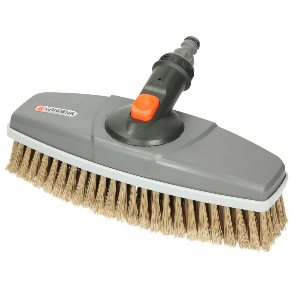 Alle productinformatieWatervoerende wasborstel met originele GARDENA systeemaansluiting voor zachte, effectieve reiniging van gevoelige oppervlakken, bijv. bij het wassen van de auto. De borstel met hoogwaardige PET-borstelharen en een werkbreedte van 27 cm kan in stappen van 30° worden gedraaid.