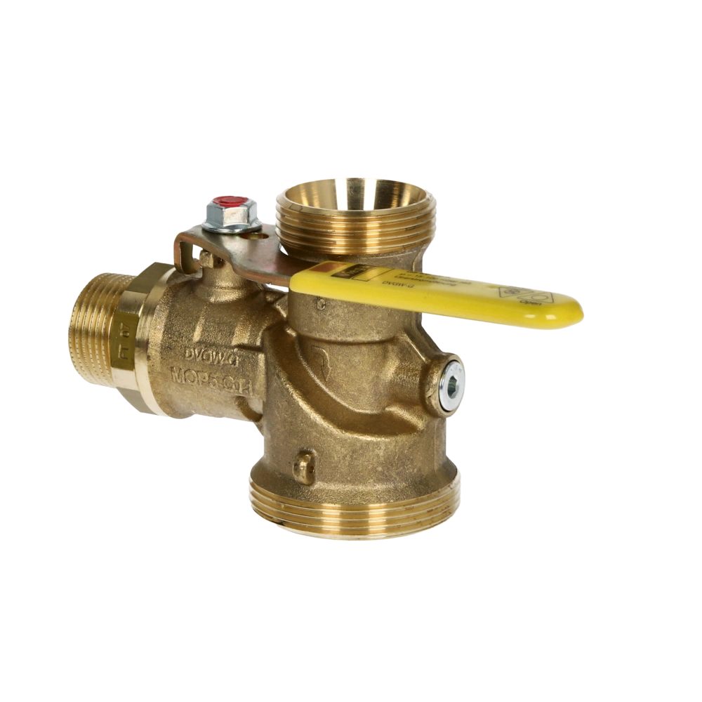 Gasmeter-kogelkraan voor de installatie van gasmeters met enkele tuit G4 en G6. De inlaatzijde van de kogelkraan kan worden afgesloten.