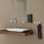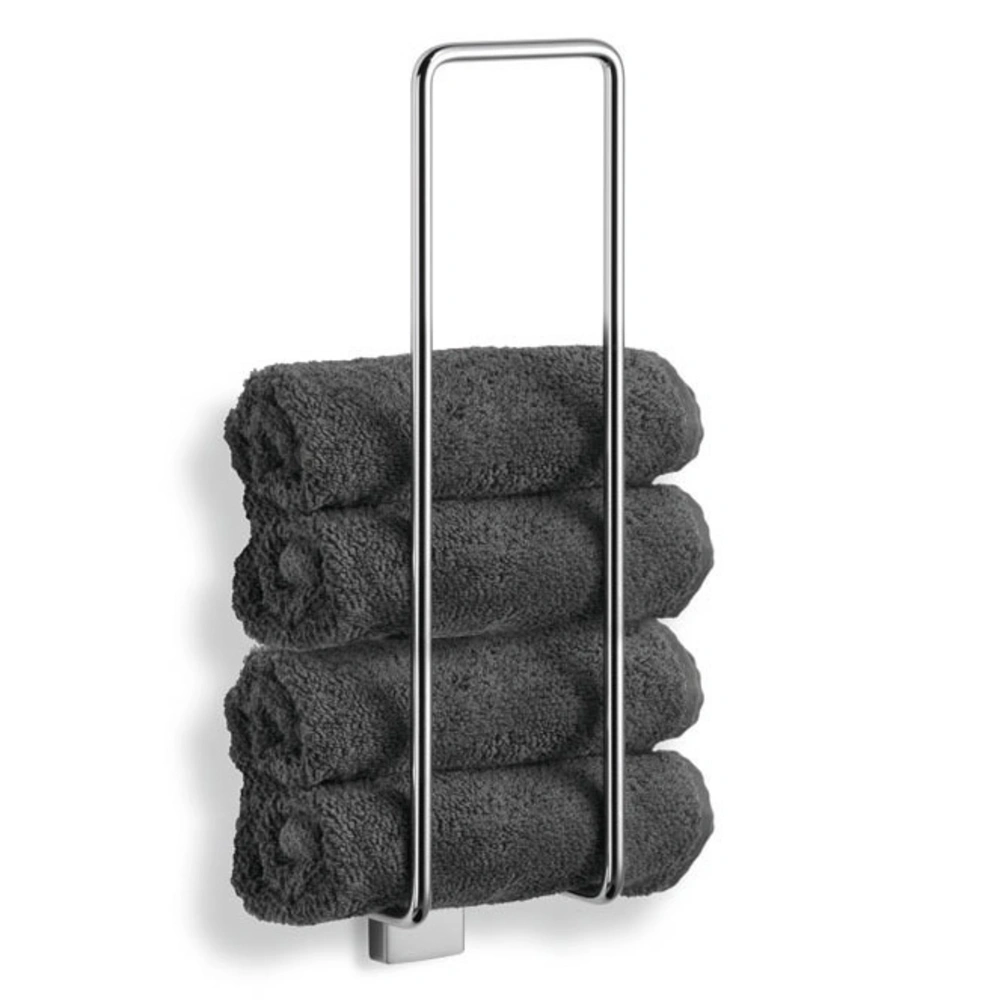 Handdoekhouder voor het opbergen van meerdere opgerolde handdoeken. Afhankelijk van de eisen en de ondergrond kan de houder flexibel aan de muur worden geschroefd of snel en betrouwbaar worden bevestigd met de lijmset.
