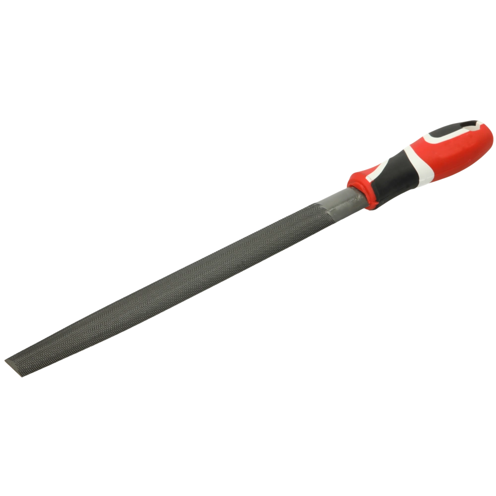 Halfronde vijl van speciaal staal met antislip, ergonomisch 2-componenten handvat.
