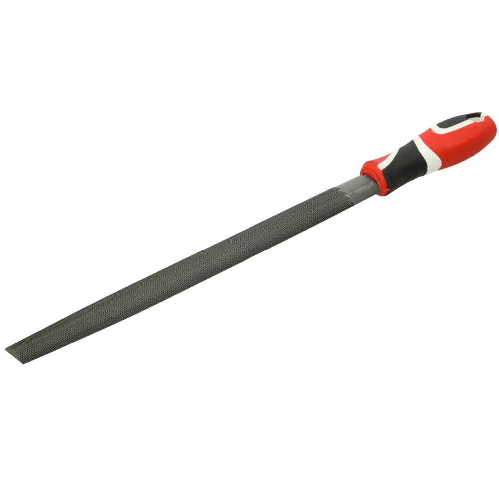 Halfronde vijl van speciaal staal met antislip, ergonomisch 2-componenten handvat.