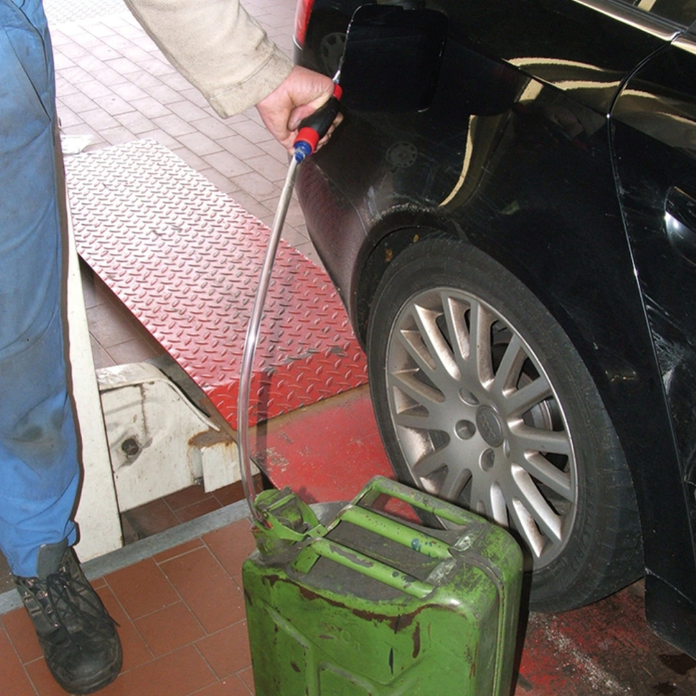 Alle productinformatie LeveringCompacte handpomp met twee flexibele PVC-slangen – ideaal voor het opzuigen en overhevelen van brandstoffen, oliën of water. De pomp is licht, robuust en gemaakt van duurzaam kunststof. Via de rubberen balg wordt de vloeistof eenvoudig opgezogen, waarna de lager gelegen vloeistofhouder zich door het hefboomeffect vanzelf vult.