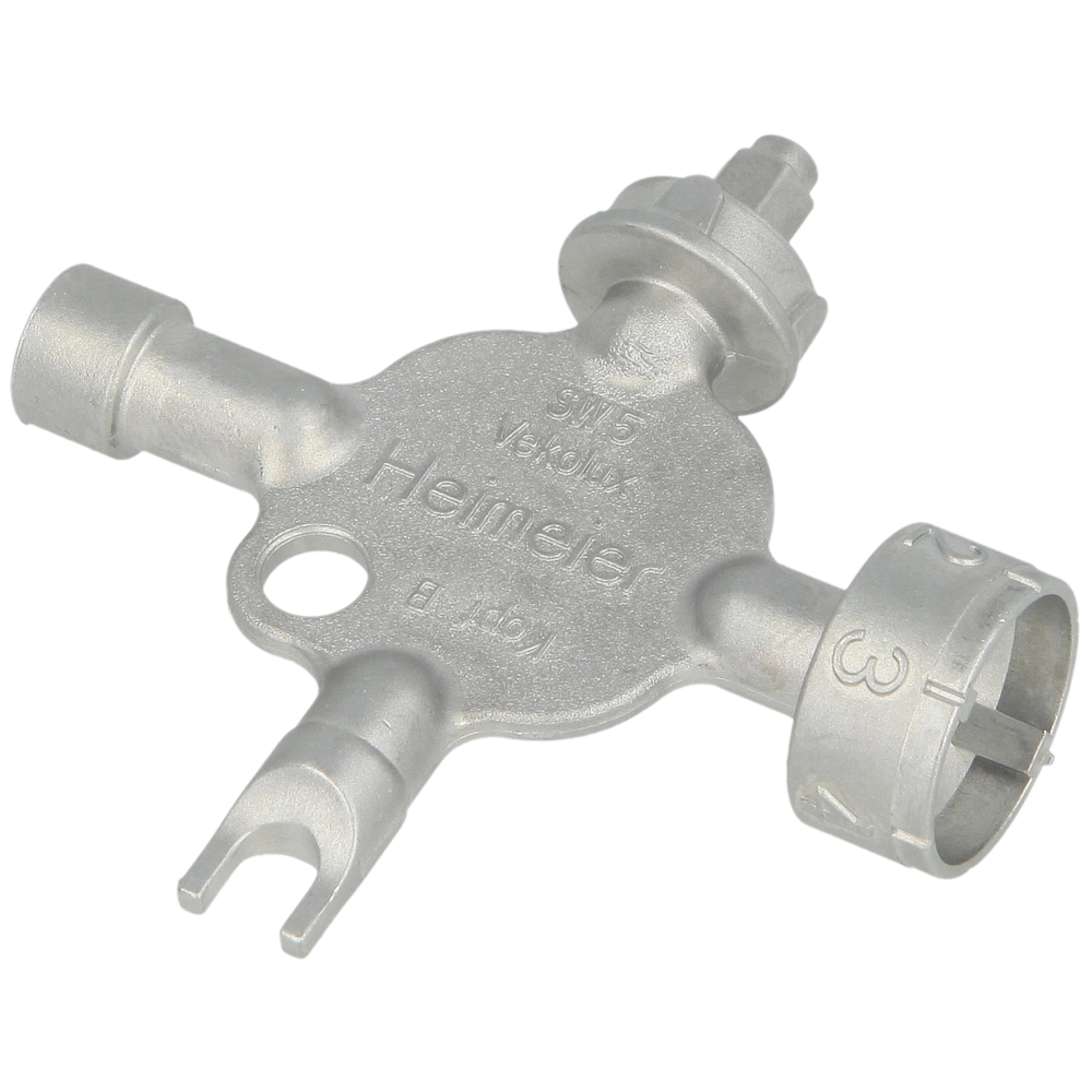 De universele sleutel is geschikt voor: Retro S, V-exakt tot eind 2011, F-exakt, thermostaatkoppen B (temperatuurinstelling), Regulux sloten, Vekolux aansluitfittingen en radiatorontluchters.
