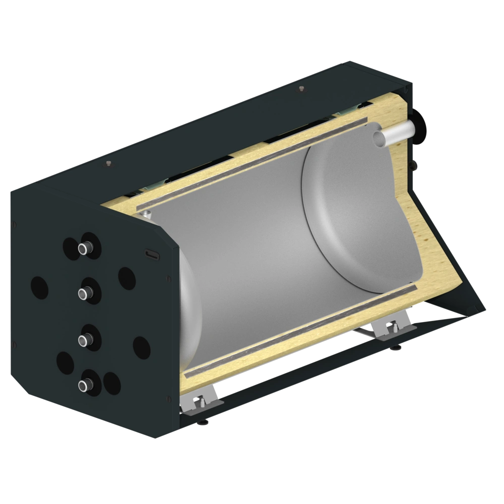 Alle productinformatieHorizontaal CV-buffervat als opslagtank voor olie- en gascondensatieketels van vrijwel alle fabrikanten. De stabiele constructie maakt een belasting tot 500 kg mogelijk. De ongeëvenaarde OEG-vacuümisolatie van de opslagvaten heeft aanzienlijk lagere warmteverliezen dan de isolatie van standaard opslagvaten.