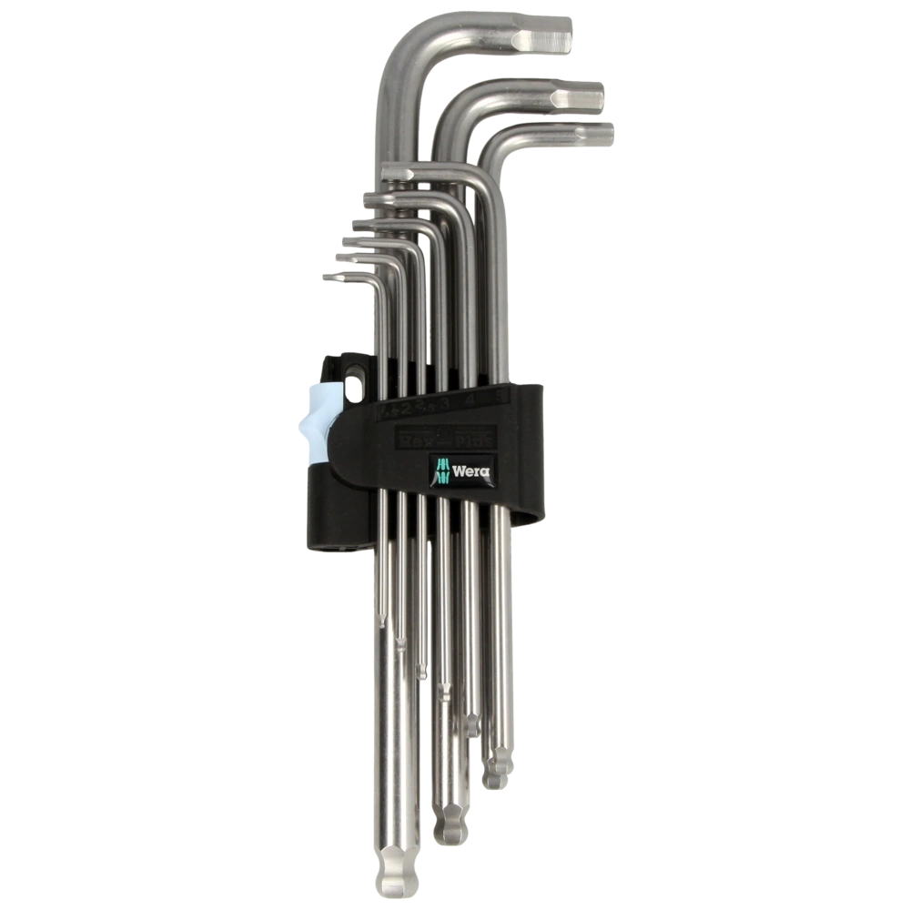 De roestvrijstalen hoeksleutel voor inbusschroeven voorkomt de overbrenging van roest. Door het speciale Hex Plus-profiel hebben ze een groter contactoppervlak in de schroefkop. De slijtvrije clip houdt de sleutels vast en maakt ze gemakkelijk los voor gebruik.