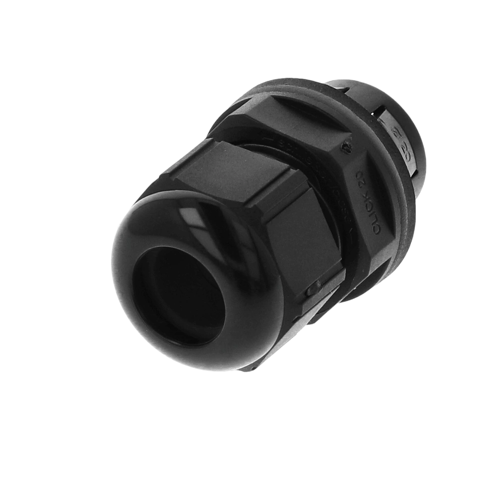 Kabelwartel met vergrendelingssysteem voor snelle en eenvoudige montage. De kabels worden vastgezet, gecentreerd en ontlast door het innovatieve kliksysteem. De schroefverbinding biedt bescherming tegen trillingen en is ontworpen met beschermingsklasse IP68 voor veeleisend gebruik.