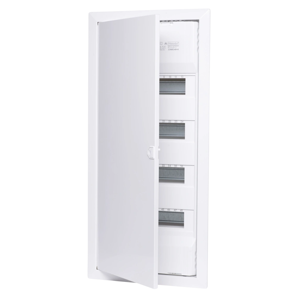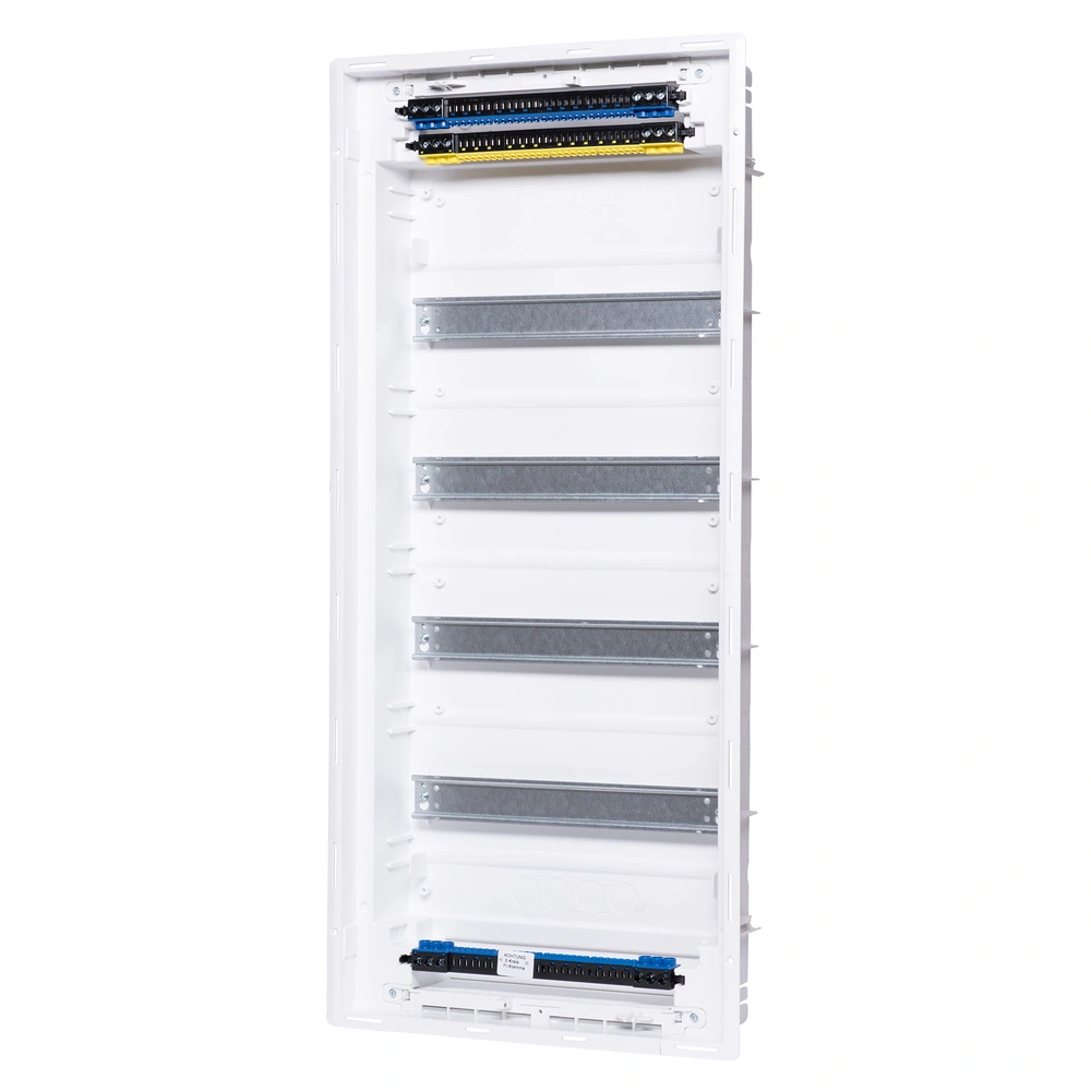 Verdeler voor kleine holle wanden voor de installatie van maximaal 56 modules. De verdeler biedt een royale bedradingsruimte en opties voor trekontlasting aan de boven- en onderkant. Het kan worden afgesloten en gekoppeld en is uitgerust met een frame en een plaatstalen deur die rechts of links kan scharnieren.