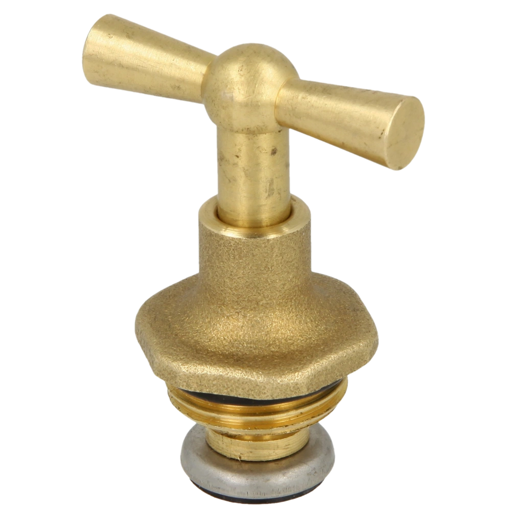 Het bovengedeelte van de knevel is gezandstraald messing in 1/2" dient als een reserveonderdeel, voornamelijk voor uitlaatfittingen. De spil gaat omhoog bij het openen van de klep of daalt bij het sluiten.