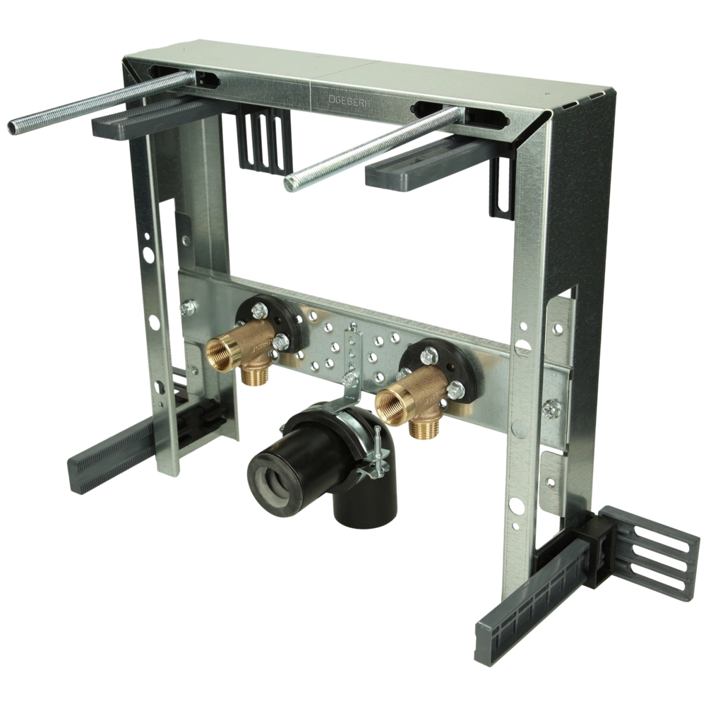 Alle productinformatie LeveringKombifix wastafelmontage-element voor eengatsgarnituur voor montage in een halfhoge of kamerhoge, natte bakstenen voorwand voor een massieve wand. Het verzinkte frame van het natbouwelement is voorzien van 4 montagebeugels, de montagediepte is te verstellen van 8 tot 19 cm. Voor de afstand tussen de keramische opzetstukken kun je kiezen tussen 17 of 28 cm. Het element heeft een in hoogte en diepte verstelbare kraanaansluitplaat en een geluiddempende en in hoogte verstelbare bevestiging voor de afvoerbocht.