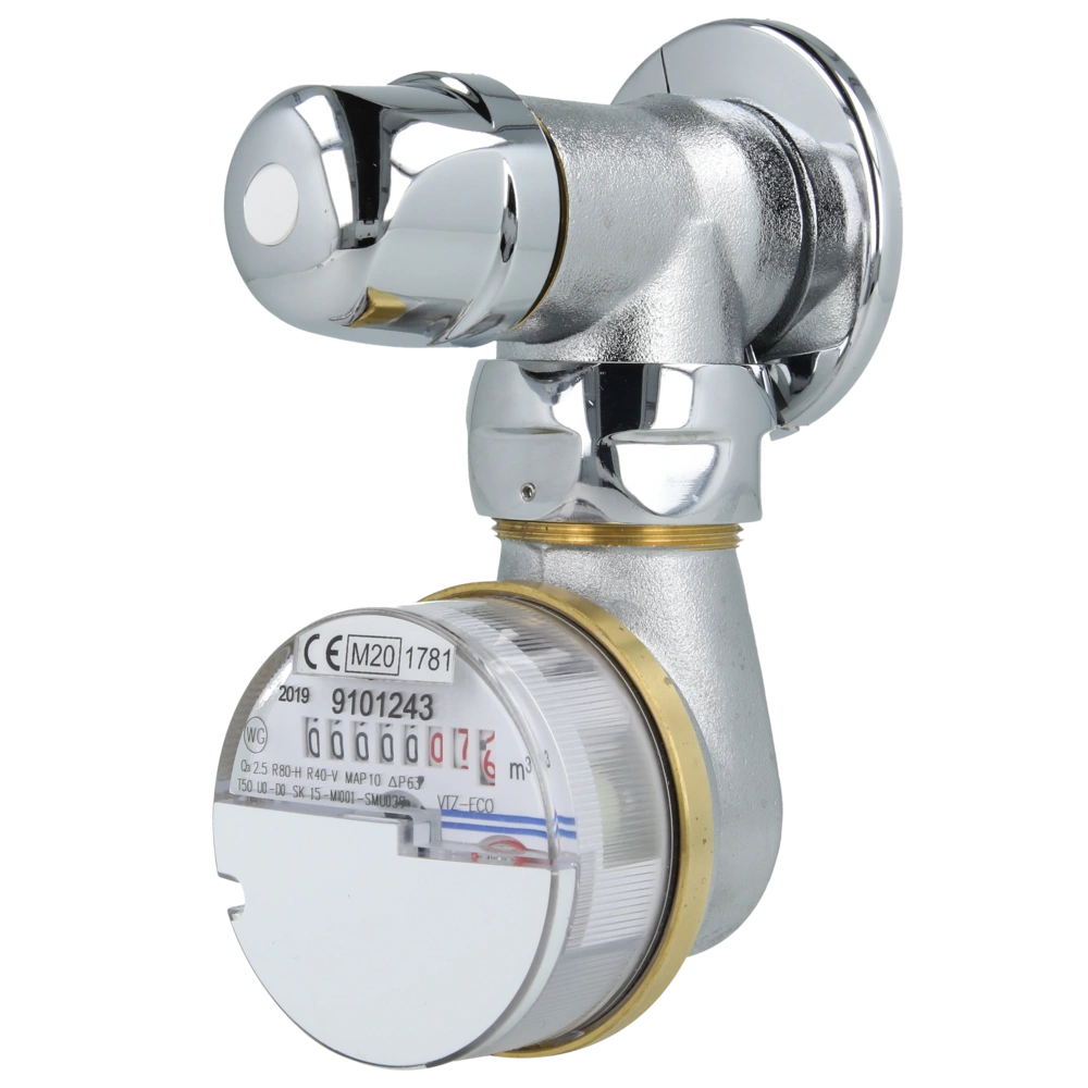 Kraanmeter voor montage op appartementsafsluiters. Het is voorbereid om achteraf te worden uitgerust met modulaire radio-, M-Bus- en impulssystemen. Een bijbehorend verbindingsstuk moet apart worden besteld.