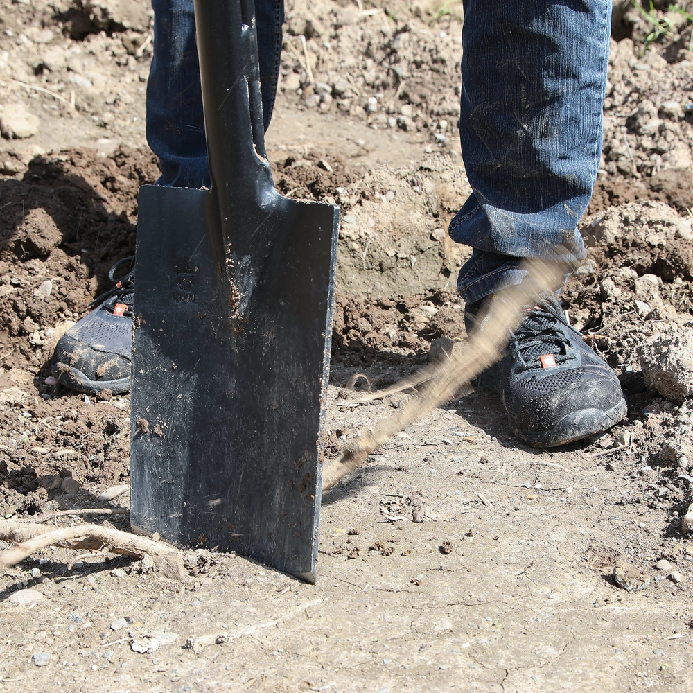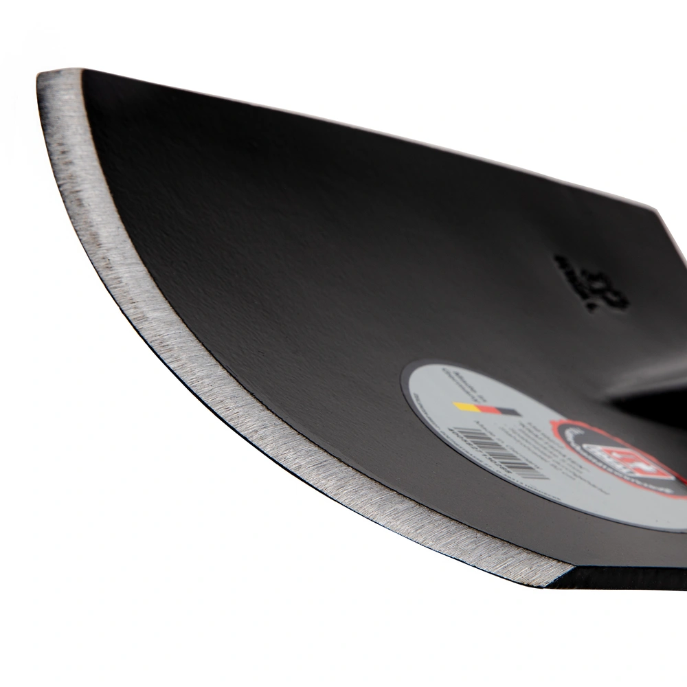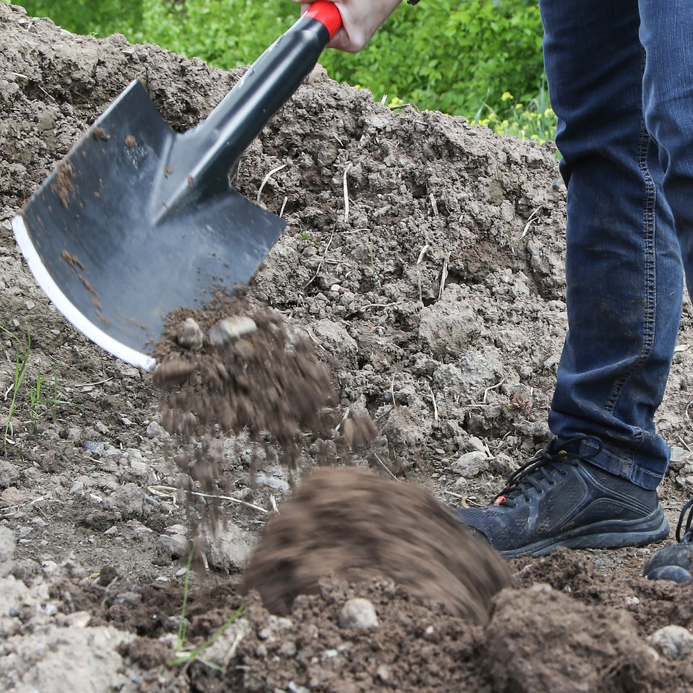 Stevige metalen spade voor vloeren met veel stenen of wortels. Door het hoge eigen gewicht is er een krachtige penetratie in de grond, waar lichtere schoppen terugveren. De metalen handgreep is ongevoelig voor een grote hefboomwerking. De spade is door zijn scherp geslepen snijvlak zeer geschikt voor opruimwerkzaamheden.