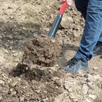 Stevige metalen spade voor vloeren met veel stenen of wortels. Door het hoge eigen gewicht is er een krachtige penetratie in de grond, waar lichtere schoppen terugveren. De metalen handgreep is ongevoelig voor een grote hefboomwerking...