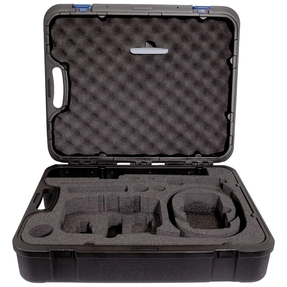 Robuuste kunststofkoffer met schuimrubberen inzetstuk voor de Wöhler A 550 rookgasanalysator. De praktische koffer biedt niet alleen ruimte voor het meetinstrument, maar ook voor een printer, roettestpomp en andere toebehoren.