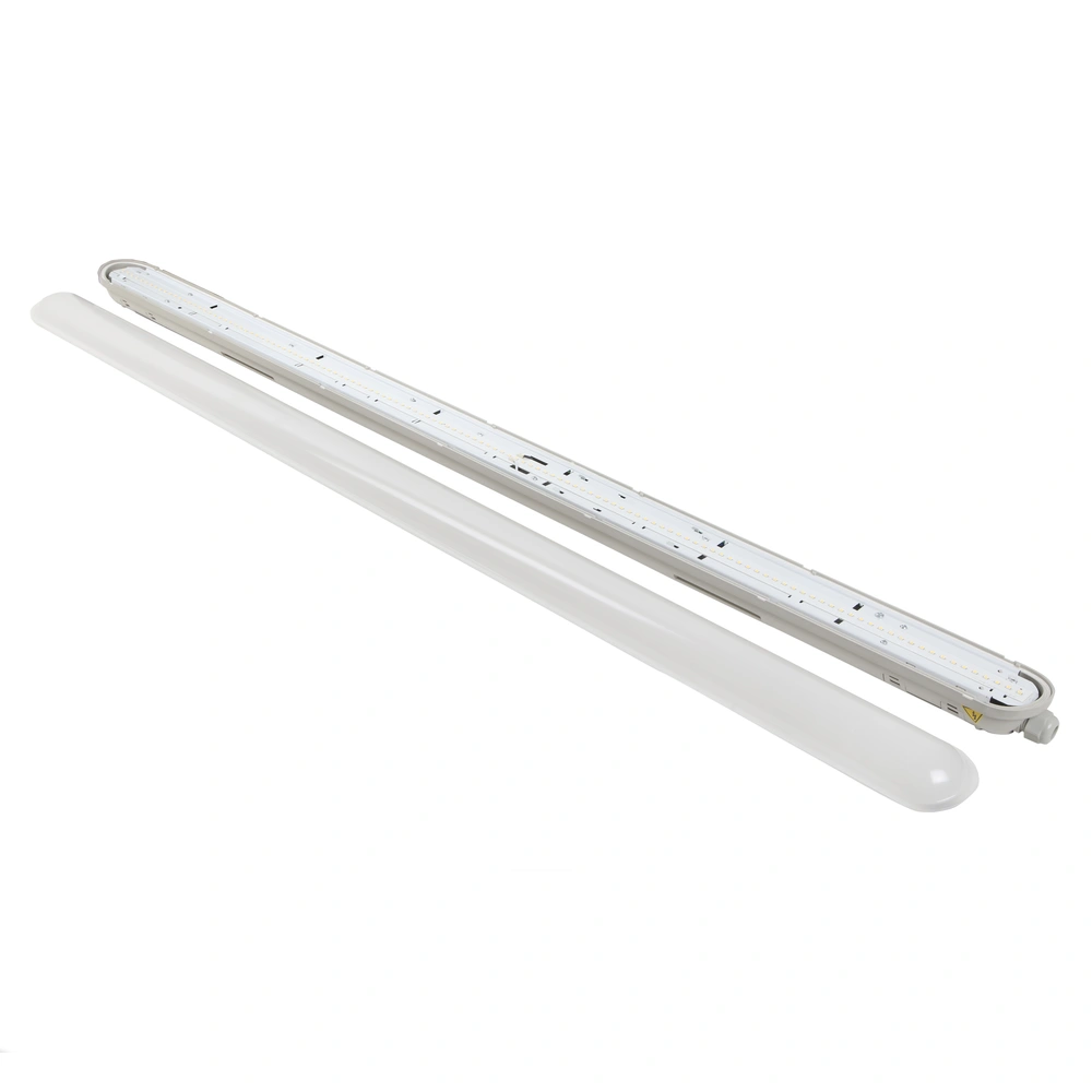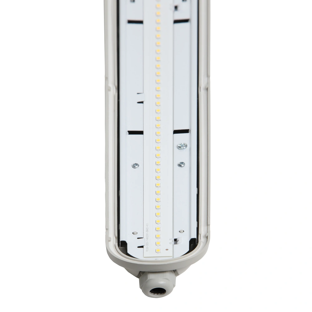Kuiparmatuur met hoge lichtopbrengst voor installatie in kelders, productie- en opslaghallen, garages of werkplaatsen. De armatuur is beschermd tegen stof en ook waterstralen en is eenvoudig te installeren. De hoogwaardige armatuur is volledig bedraad met 1,5 mm² en overtuigt door zijn duurzame ledstrip en hoge efficiëntie.