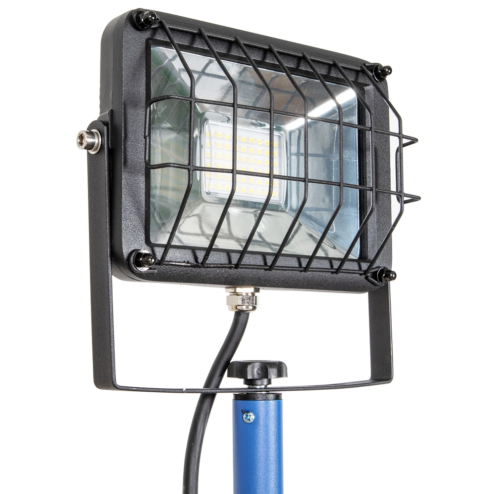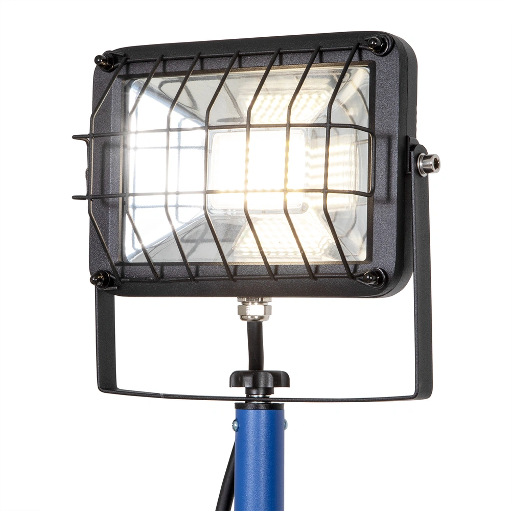 Waterstraal- en stofdichte LED-spot met in hoogte verstelbaar statief. Dankzij de LED-technologie is de lichtopbrengst groter, maar het energieverbruik en de warmteontwikkeling lager. De lichtbron wordt beschermd door veiligheidsglas en een rooster.