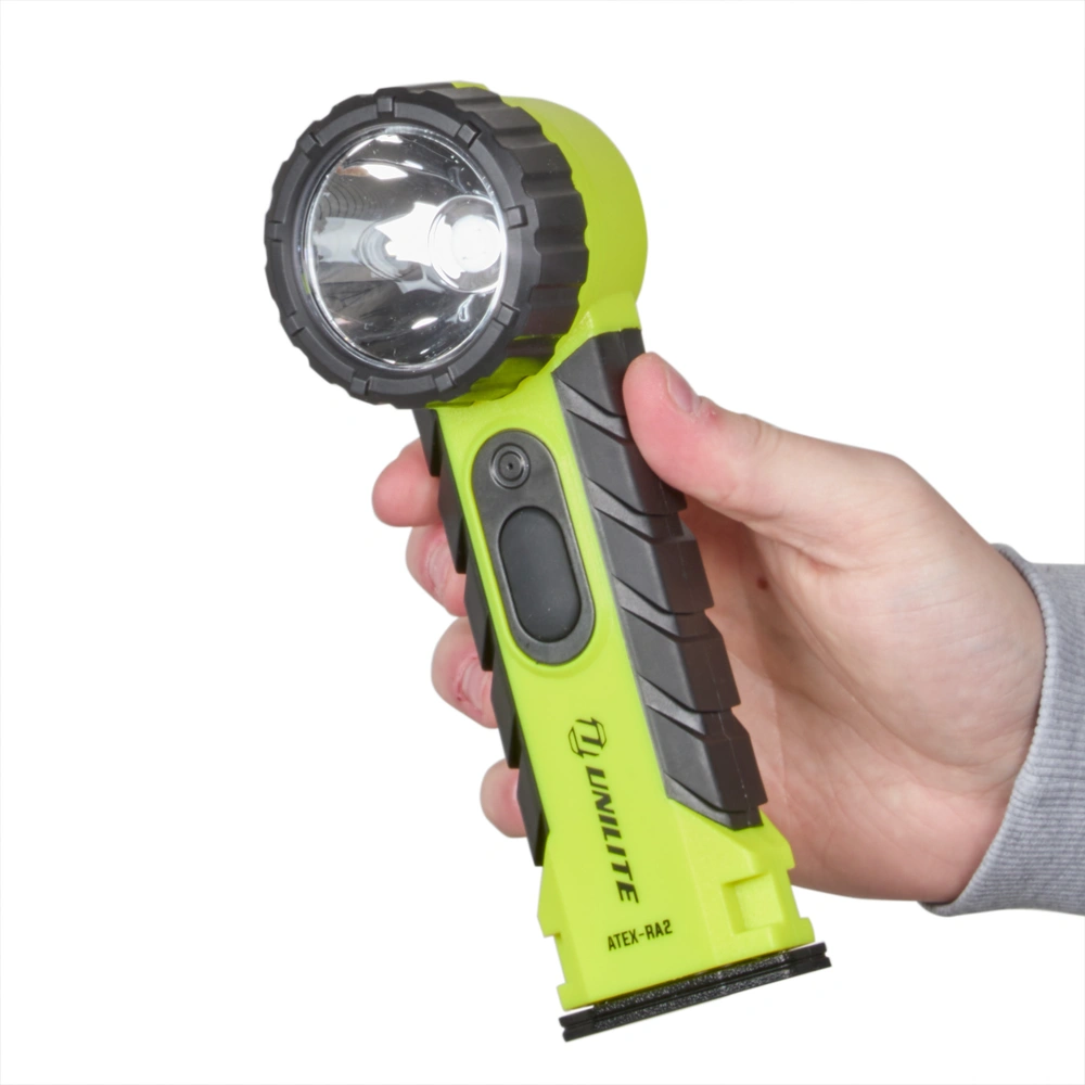 Zaklamp op batterijen met rechthoekige kop, speciaal ontwikkeld voor gebruik in explosiegevaarlijke omgevingen. De zaklamp is uitgerust met krachtige witte LED's die zorgen voor een groot bereik...