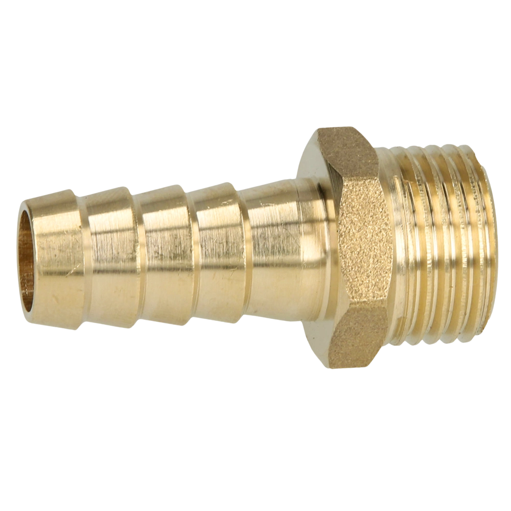 Messing slangtuit met zeskant voor het aansluiten van 1/2" slangen op fittingen met 1/2" inwendig schroefdraad.