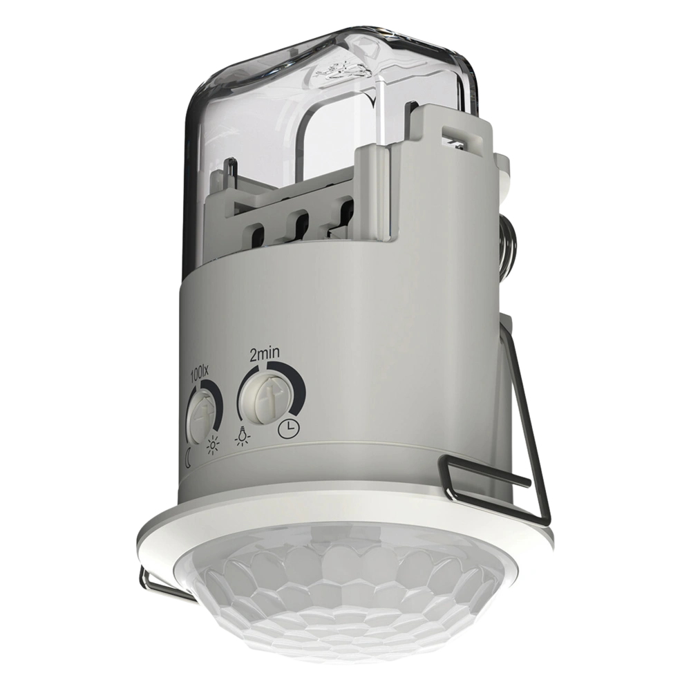 Deze bewegingsmelder is ideaal voor kleinere ruimtes zoals kantoren, gangen of sanitaire ruimtes. Met zijn compacte ontwerp en 360° detectie zorgt hij betrouwbaar voor een op de behoefte afgestemde, automatische lichtschakeling. Dit bespaart energie en verhoogt het comfort - zelfs in kleine ruimtes. De in de fabriek ingestelde helderheidsdrempel en inschakelduur maken een onmiddellijke inbedrijfstelling mogelijk. Beide waarden kunnen flexibel worden aangepast aan individuele vereisten. De detector is compatibel met verschillende lichtbronnen zoals LED-, halogeen- en tl-lampen.