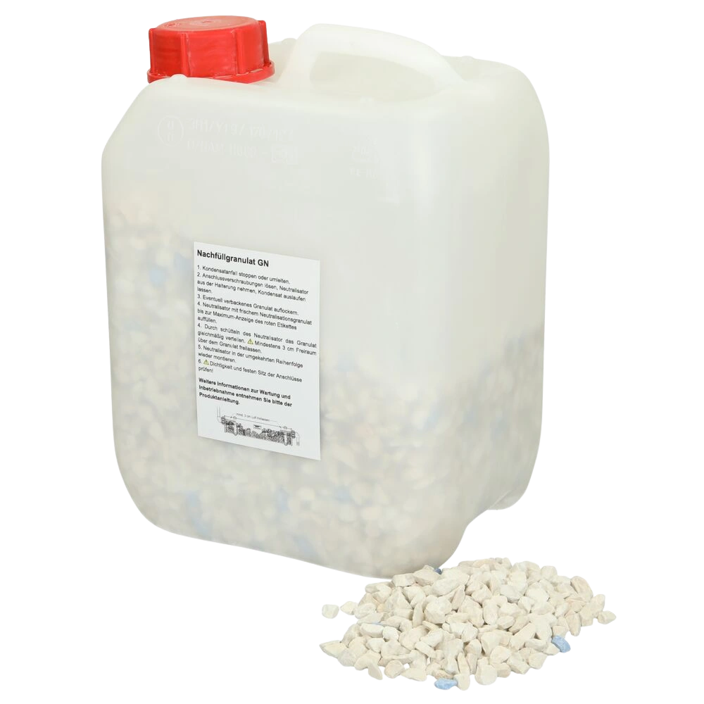 Alle productinformatieHet op calcium gebaseerde GN-navulgranulaat is vooral geschikt voor de Neutrakon® 05 / BGN-neutralisator en verwijdert zure condensaten uit oliegestookte condensatieketels. Bovendien voorkomt het schade aan eigen afvoerleidingen en afvoerleidingen. Korrels en condensaat vormen samen volledig oplosbare zouten die in de natuur veel worden gebruikt. Gebruikte korrels kunnen met het normale huisvuil worden weggegooid.