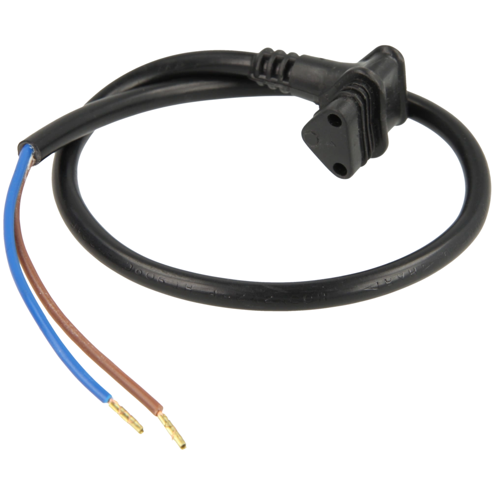 Het netsnoer is voorzien van een haakse stekker, maar hij heeft geen aardedraad.