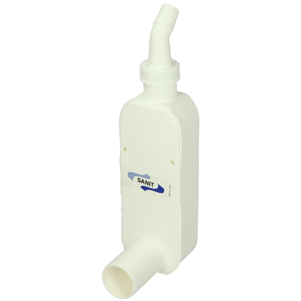 De kunststof sifon wordt gebruikt voor wasmachines en vaatwassers.