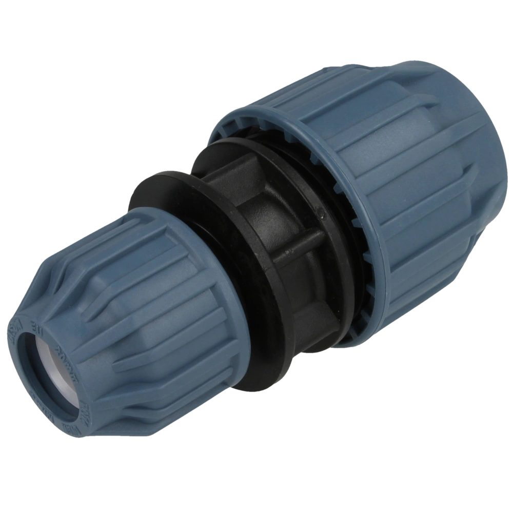 PE klemkoppelstuk voor het aan beide zijden aansluiten van PE buizen met verschillende diameters.