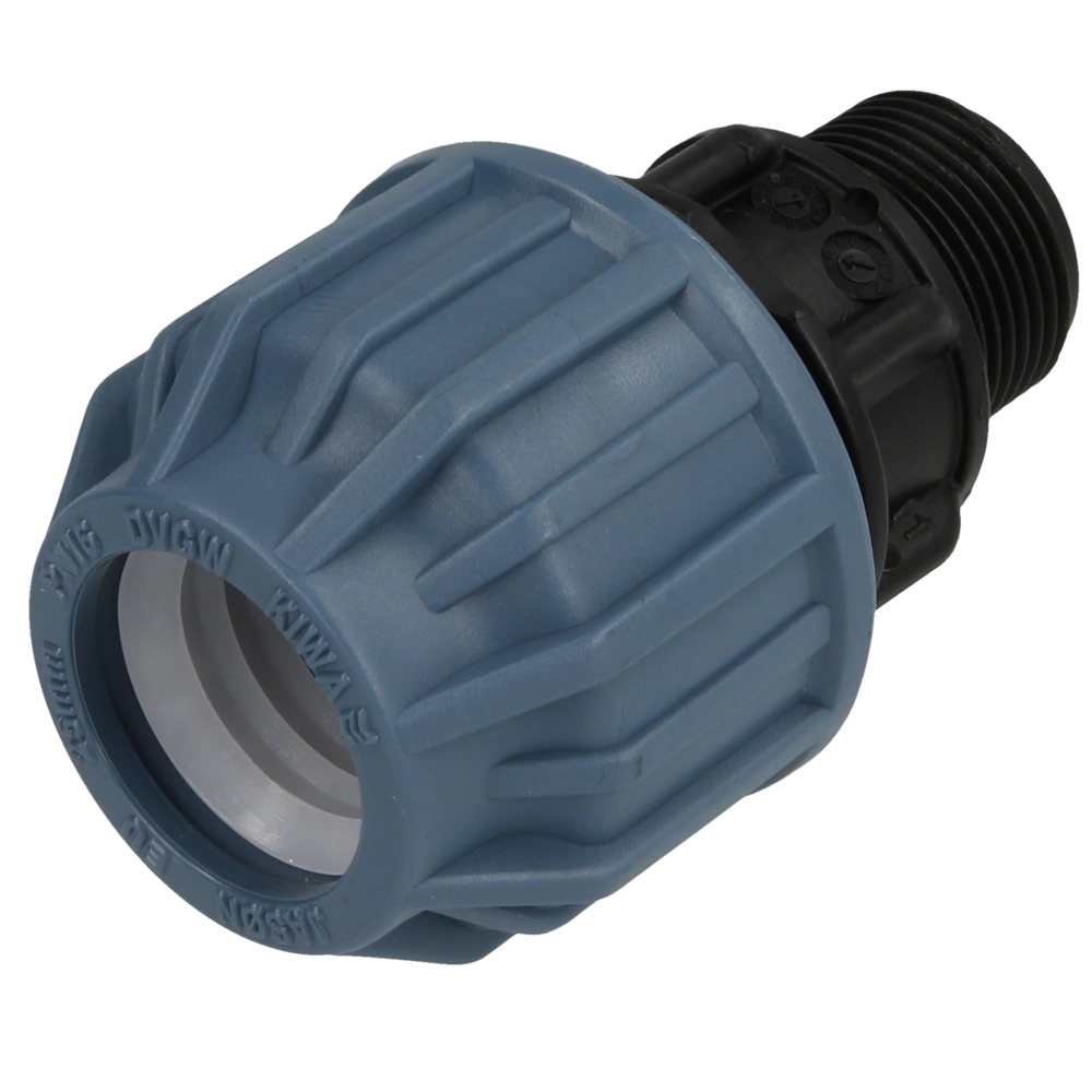 PE knelkoppeling met buitendraad voor het aansluiten van PE-buizen.