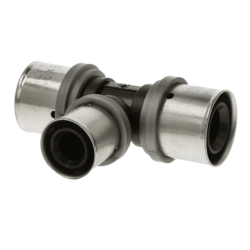 Persfitting van hoogwaardig polyfenyleensulfonkunststof voor een snelle en eenvoudige montage met maximale veiligheid. De loodvrije fitting van PPSU heeft twee O-ringen en drie kijkvensters voor een praktische controle van de precieze insteekdiepte van de meerlagenbuis in de RVS aansluiting. Door de multi-contour van de fitting is het mogelijk om met TH-contour over alle maten te persen en met U-contour in maten van 16 tot 32 mm. Een stabiele kunststof ring maakt veilig persen mogelijk, zelfs in moeilijke posities. De fitting is ondicht wanneer deze niet is geperst. Dit zorgt ervoor dat niet-geperste verbindingen tijdens de druktest kunnen worden gelokaliseerd en geëlimineerd. Door de vrije doorgang zijn er slechts lage drukverliezen en geen stromingsgeluiden.