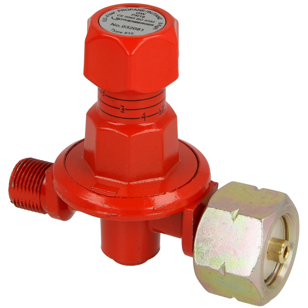 Propaanregelaar in stevige messing uitvoering voor propaangasflessen tot 11 kg.