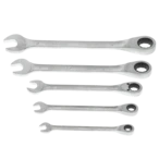Steeksleutel met ringratel in verschillende maten en steeksleutel in één set. Een aandrijfadapter voor 1/4"- of 1/2"-wisselstukken en opsteekbare beschermbekken voor gevoelige oppervlakken...