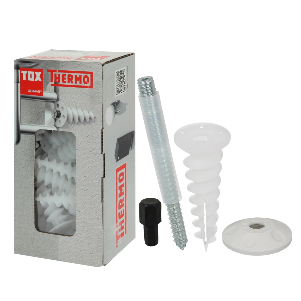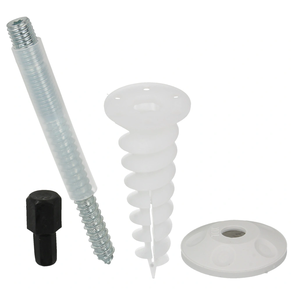 Alle productinformatie LeveringMontageset voor het bevestigen van regenpijpen of andere elementen aan ETICS gevels zoals EPS, XPS, PUR en houtvezelisolatieplaten. De verstelbare stokschroef compenseert oneffenheden in de gevel en de isolatieplug zorgt voor een thermische scheiding zonder koudebruggen. De flexibele afdekkap beschermt tegen regen en opspattend water, terwijl de beschermhoes voorkomt dat de schroefdraad vuil wordt bij het pleisteren. Het plaatsen voor of na het pleisteren gebeurt met behulp van een bijgeleverd montagegereedschap.