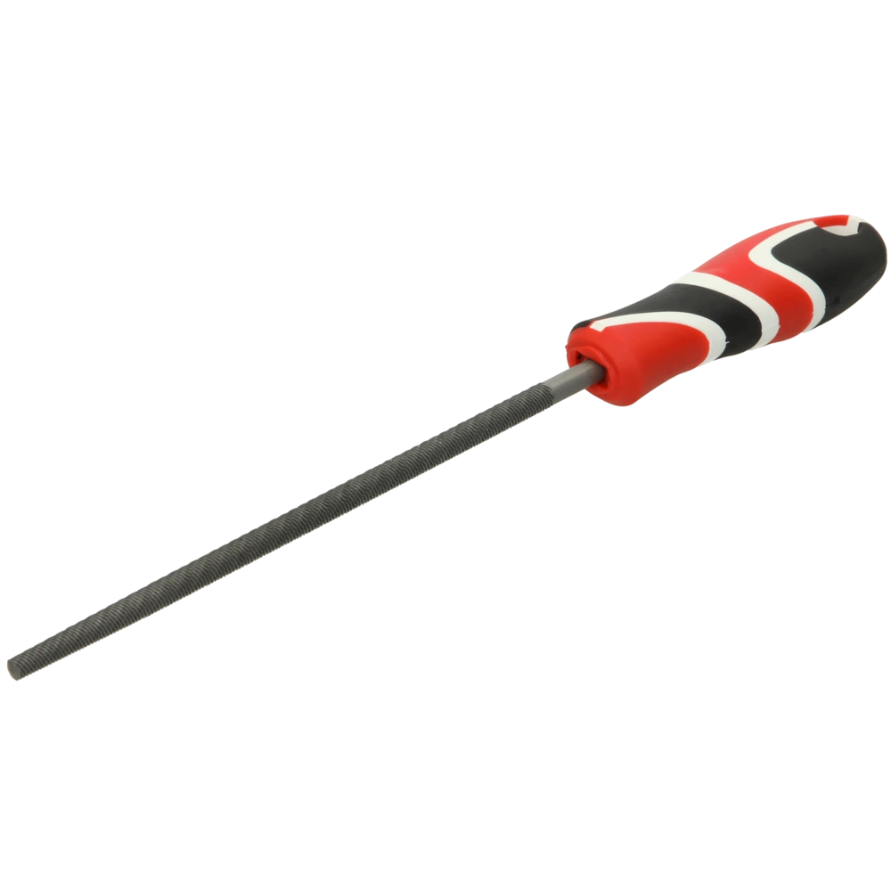 Ronde vijl van speciaal staal met antislip, ergonomisch 2-componenten handvat.