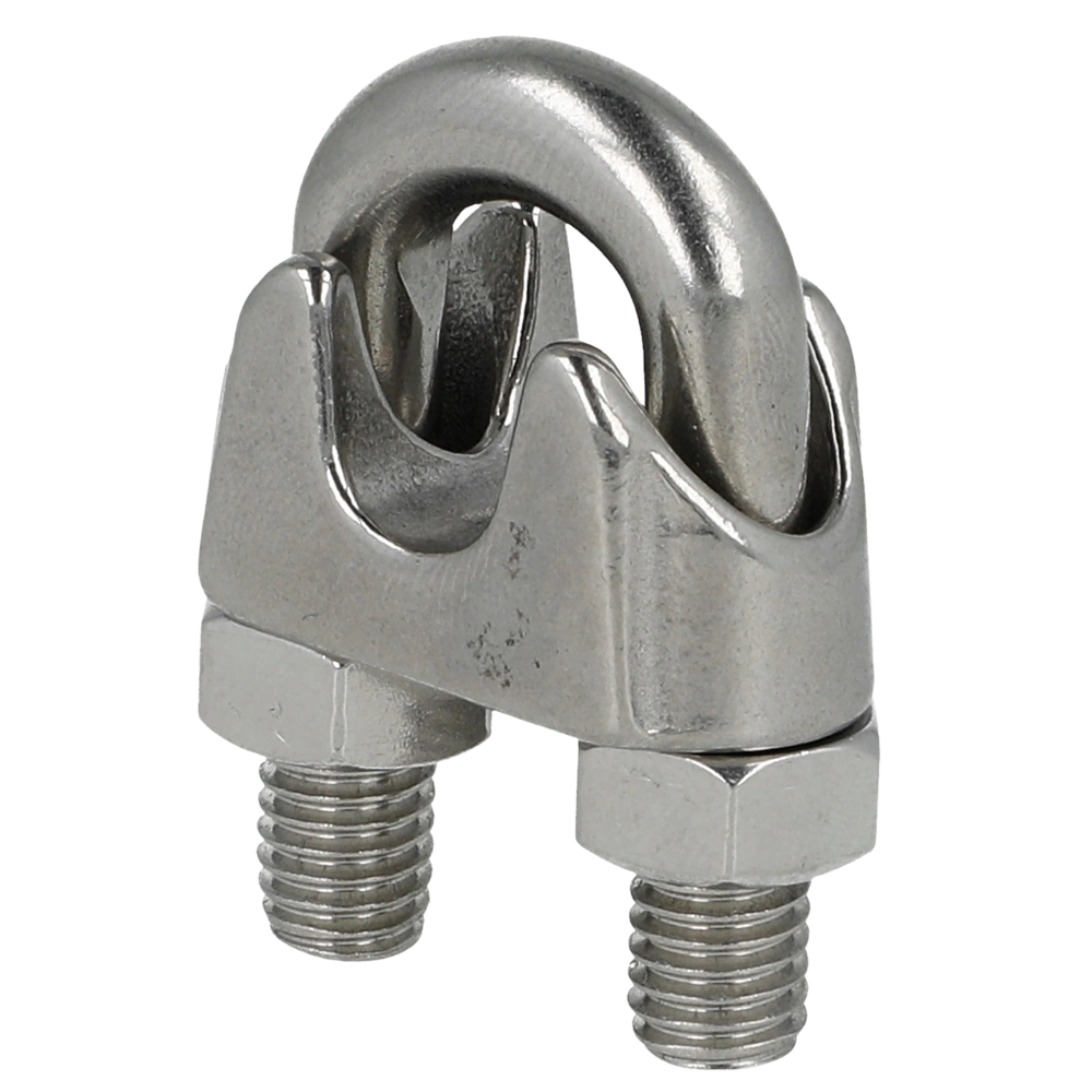 Weerbestendige draadklem in roestvrij staal voor het verbinden van draadkabels.