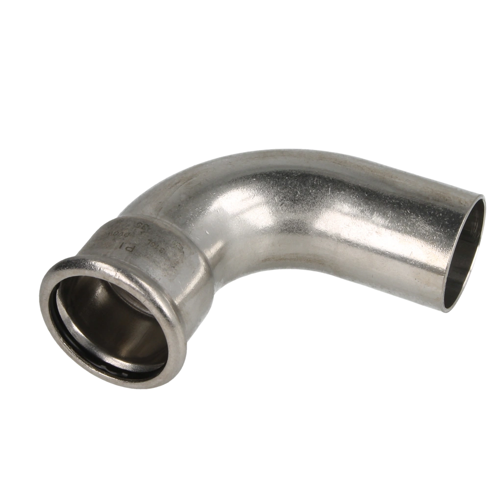 RVS persfitting voor drinkwaterinstallatie en verwarmings-, koel- en solarinstallaties voor het persen met contour M persbekken. Ook toepassing in olievrije en droge persluchtinstallaties is mogelijk. De fittingen zijn bij levering voorzien van een hittestabiliserende en heetwaterbestendige O-ring van EPDM.