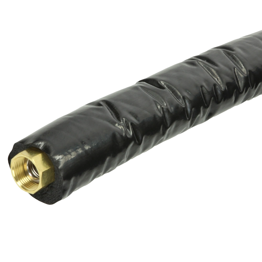de 13 mm dikke isolatie (eventueel ook als 19 mm leverbaar) is UV-bestendig. De buizen zijn in te korten, een nieuwe aansluitset vindt u hier Aansluitset 3/4" voor RVS-ribbelbuis