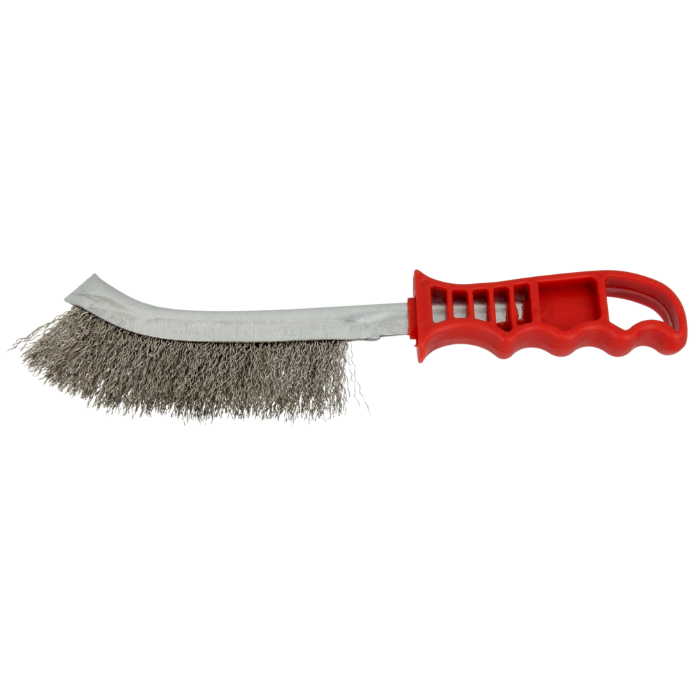 Universeel inzetbare staalborstel met stevige kunststof handgreep. De gegolfde draad maakt het ideaal voor oppervlaktebehandeling.