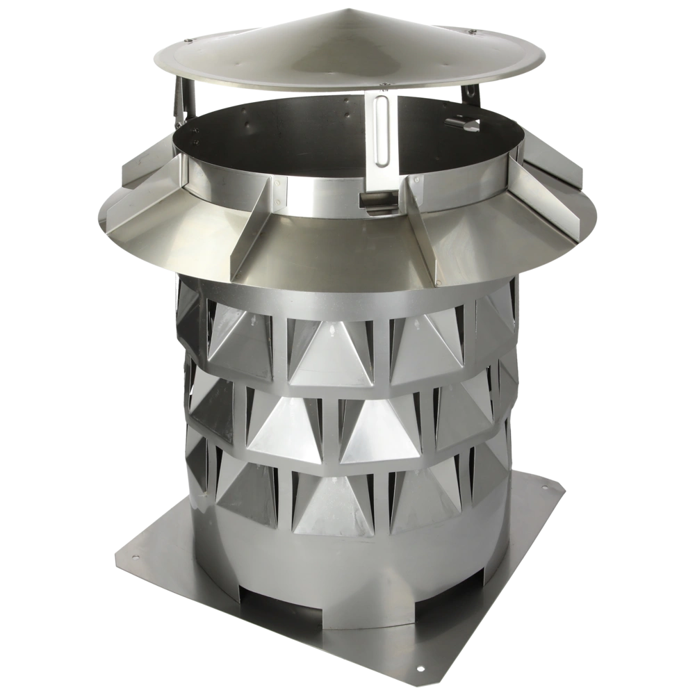 Geschikt voor binnenhaarden, vierkant of rechthoekig van 180 x 180 tot 230 x 230 mm. De Windkat-buis wordt centraal over de schoorsteenopening geplaatst.