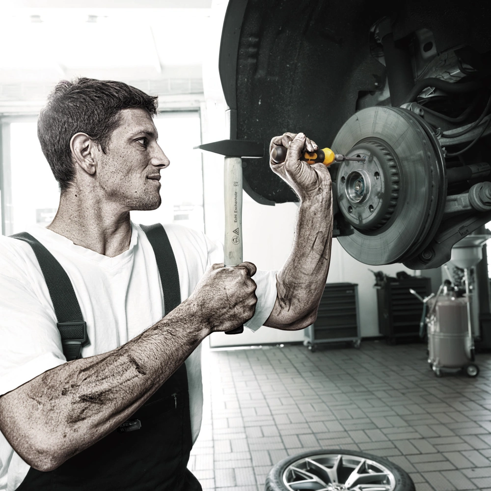 Compacte en robuuste slagschroevendraaier met verwisselbare lemmets voor het losdraaien van schroefverbindingen. De slagfunctie heeft een loskoppelmoment van 25 Nm en kan handmatig worden ingeschakeld...