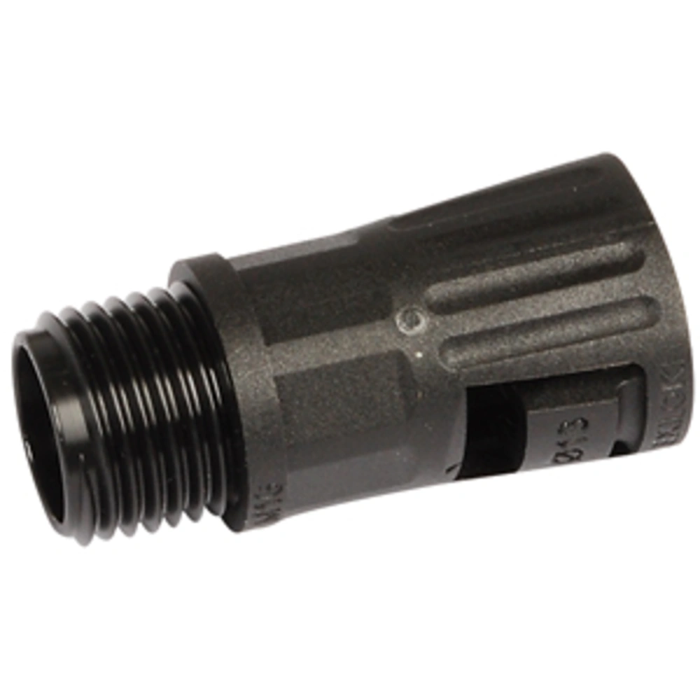 Eendelige koppeling van polyamide met metrisch schroefdraad voor snelle en eenvoudige montage op kabelbeschermingsslangen.